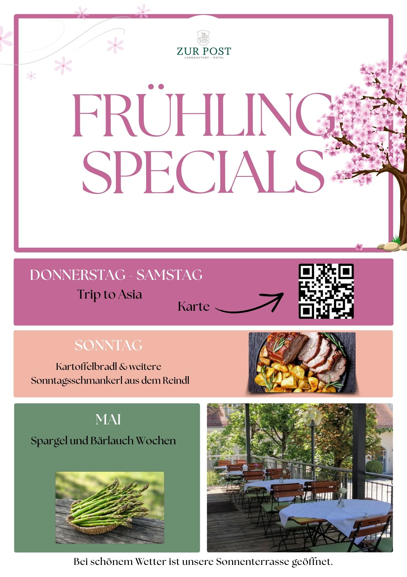 Mit der Frühlingskarte wird’s leichter, frischer und einfach nach Frühling. Von herzhaft bis fein – passend zur Saison und zum ersten Sonnenschein. Alle Details findest du in der aktuellen Karte.